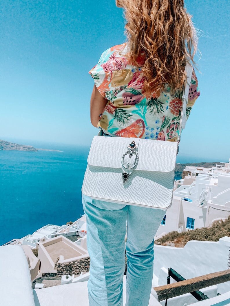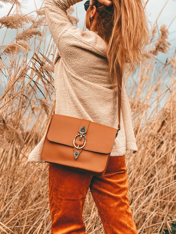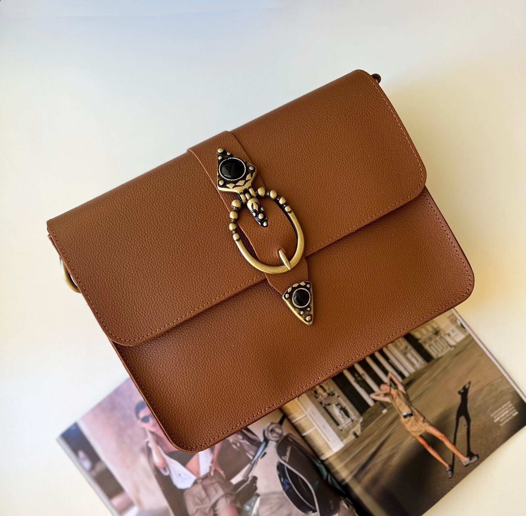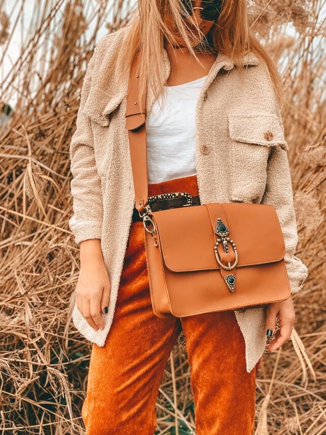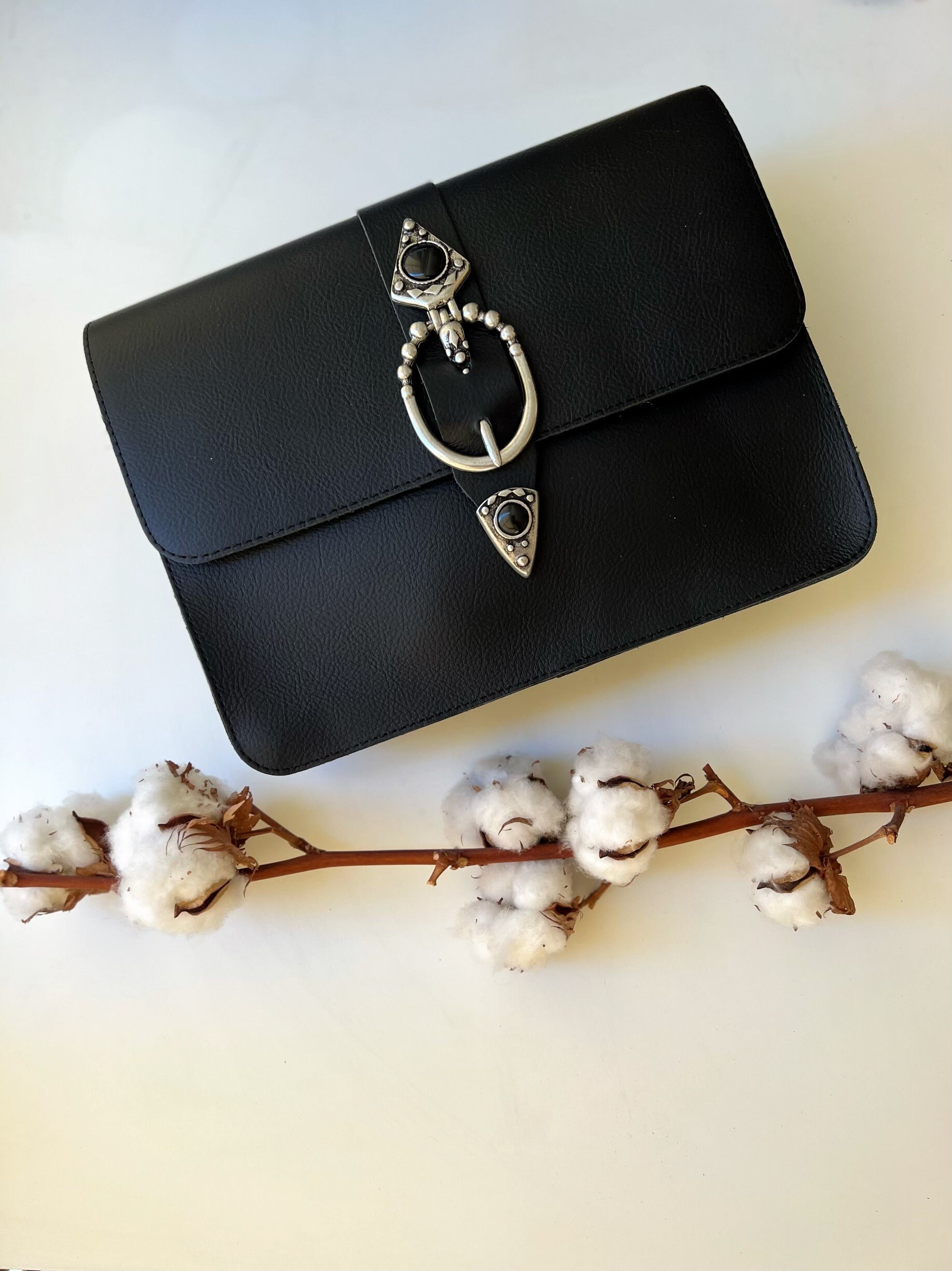 Introducing the “Regeneration” Shoulder Bag, the stunning handmade leather accessory that embodies elegance and uniqueness. Crafted with utmost attention to detail, this rectangular bag features full grain leather, bronze zamak buckles, and captivating black onyx stone embellishments, giving it a charming boho allure. Versatility is key, as you can wear it as a crossbody bag, shoulder bag, or even a purse. Available exclusively at us Store. Don’t miss out on this one-of-a-kind beauty.