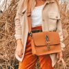 Boho Crossbody Bag Brown Leather Handbag Women Purse
