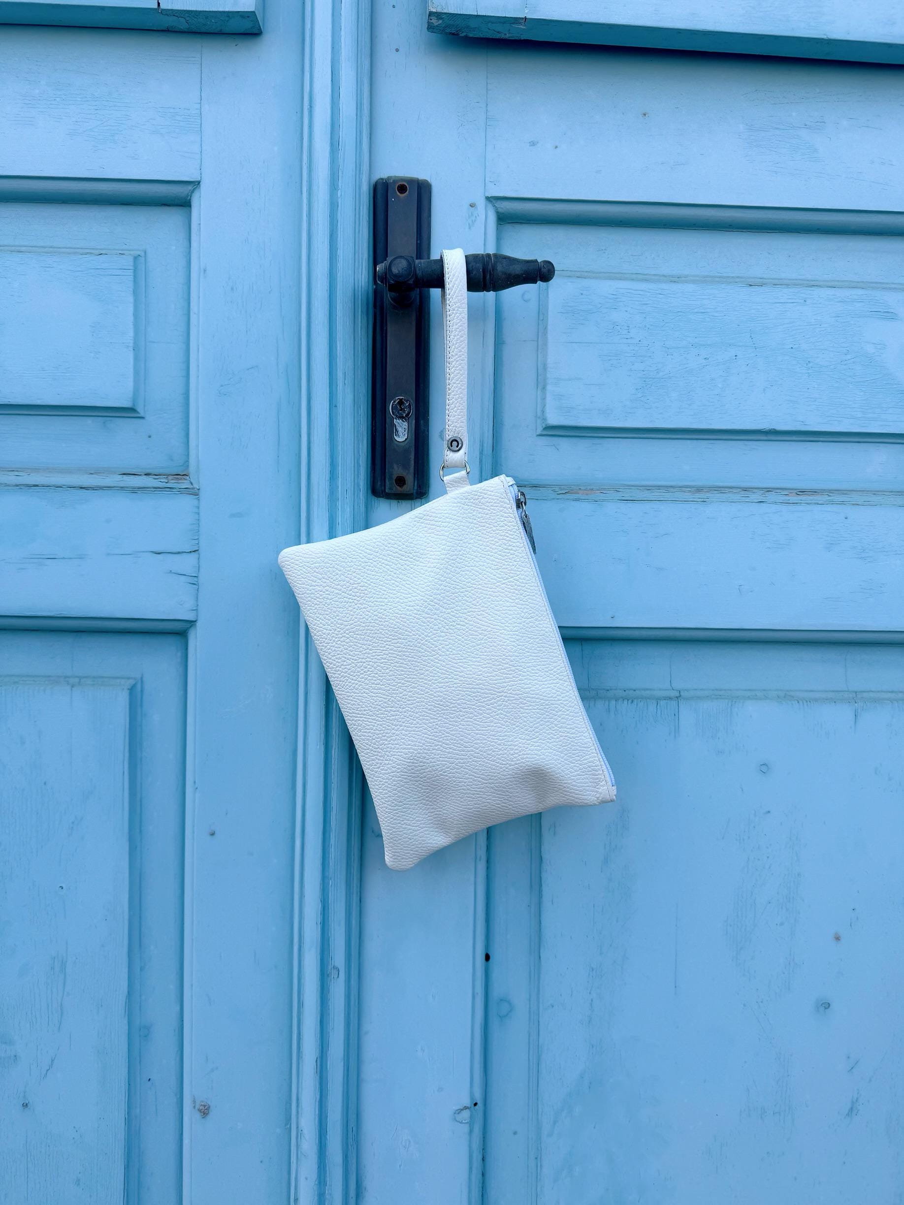 White Leather Clutch Bag Minimalist Wristlet Purse Women